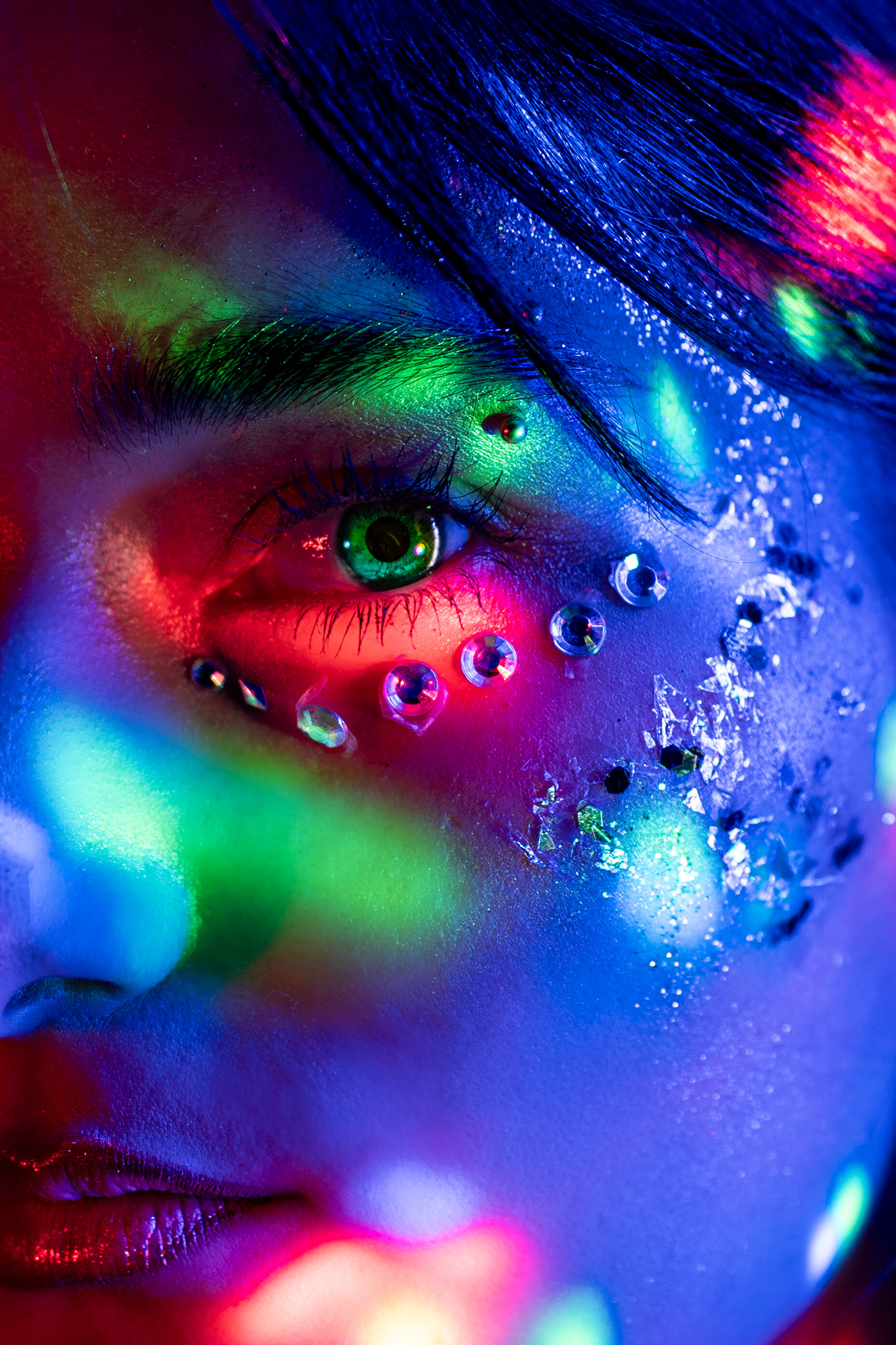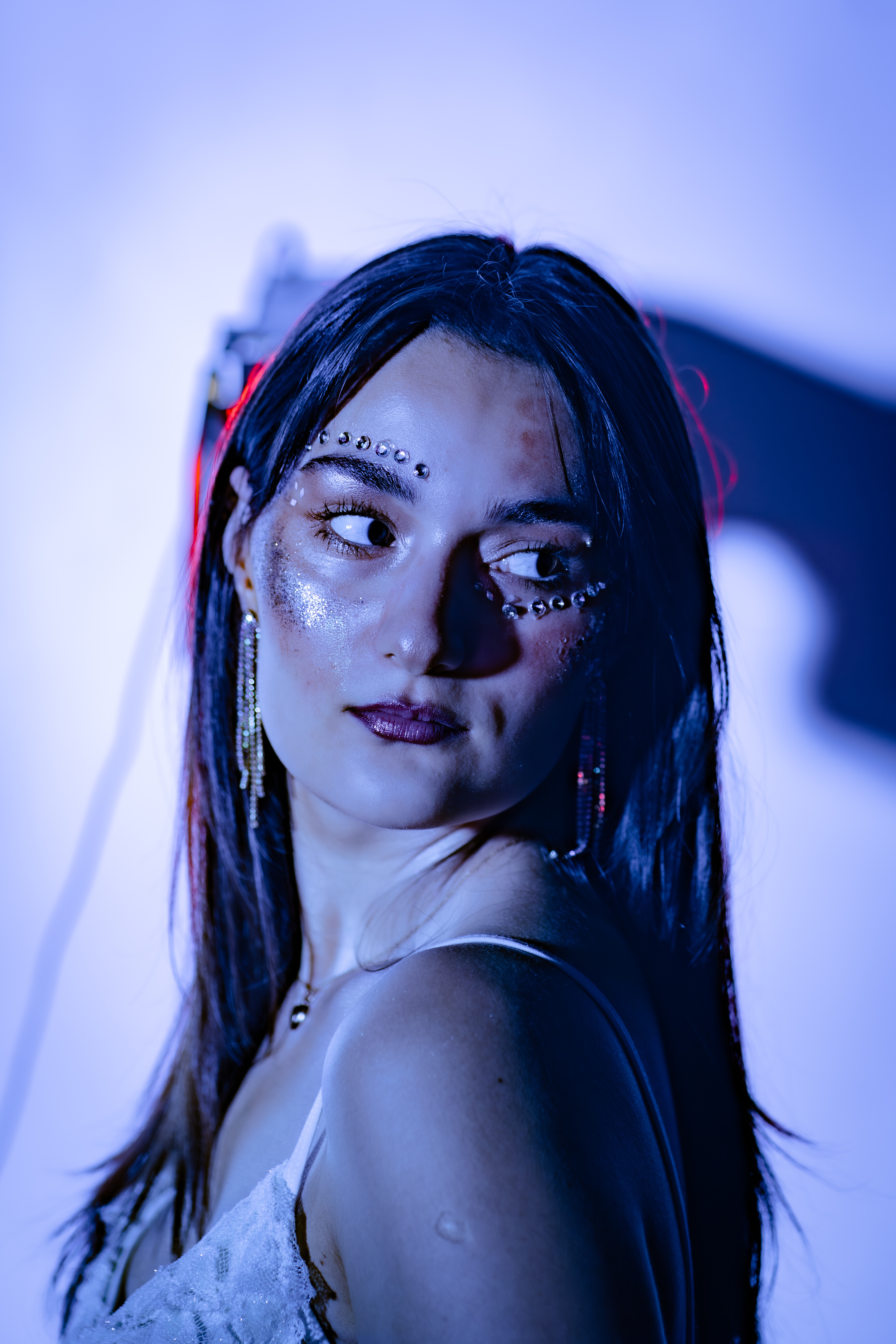 Posiadamy kolorowe tła, różne rodzaje oświetlenia, kolorowe ledy, dym, światło błyskowe, światło stałe, strumienice, wrota, softboxy, czasze modelujące, modyfikatory światła i inne ;-)